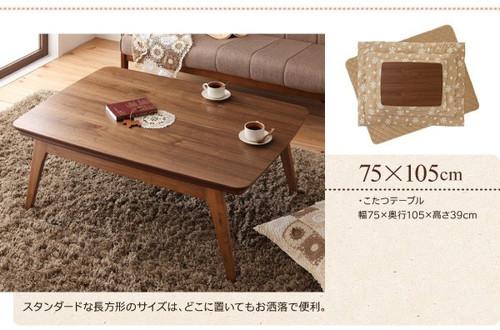 こたつ 本体 ローテーブル センターテーブル おしゃれ 安い 木製 リビングテーブル ちゃぶ台 ( 机 長方形 75×105cm) 4人 大きい 約 高さ40 ウォールナット 北欧 モダン デザイナーズ レトロ アンティーク 可愛い 姫 角丸