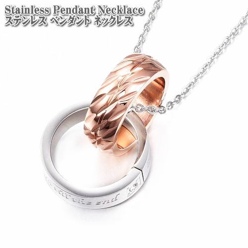 ステンレスジュエリー ラインストーン ペアリングネックレス Stainless ステンレス ネックレス 二重リング ペアリング ペンダント ピングゴールド シルバー