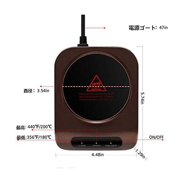 ●飲み物をちょうどよい温度で保温するホットコースター ●安全・安心の防水デザイン ●安全のために連続2時間使用で自動OFF機能 ●マグカップ、陶器、耐熱ガラスのカップに対応 ●給電タイプ:ACアダプター ● こちらの商品は即納対応商品です。