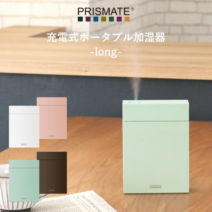 【着後レビューで今治タオル他】PRISMATE 「 充電式ポータブル加湿器 long 」PR-HF028 充電 コードレス ポータブル パーソナル 加湿器 USB 会社 プリズメイト ホワイト/スモーキーピンク/パウダーブルー/ブラウン 乾燥対策 おしゃれ 【ギフト/プレゼントに】