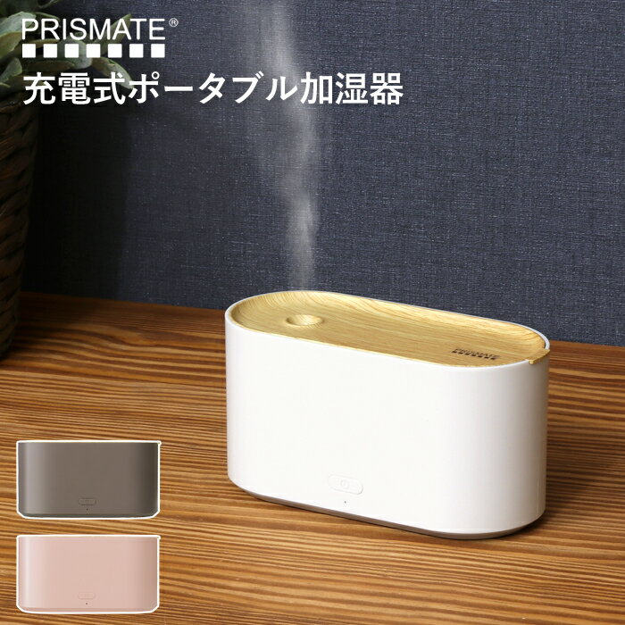 【着後レビューで今治タオル他】PRISMATE 「 充電式ポータブル加湿器 」PR-HF030 超音波式 コンパクト 卓上加湿器 パーソナル加湿器 プリズメイト ホワイト/ブラウン/スモーキーピンク 乾燥対策 充電 USB給電 卓上 オフィス ワイヤレス おしゃれ 携帯 持ち運び