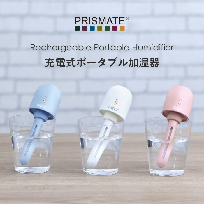 PRISMATE 「 充電式ポータブル加湿器 」PR-HF039 充電 コードレス ポータブル パーソナル 加湿器 USB充電 会社 オフィス 車 旅行 プリズメイト ホワイト/スモーキーピンク/スカイブルー 乾燥対策 おしゃれ コンパクト 【ギフト/プレゼントに】