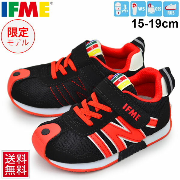 子供靴 キッズ シューズ 男の子 女の子 子ども イフミー IFME 限定モデル スニーカー 運動靴 通園通学 学校 カジュアル 15cm-19cm 男児 女児 ブラック 黒 /30-7730